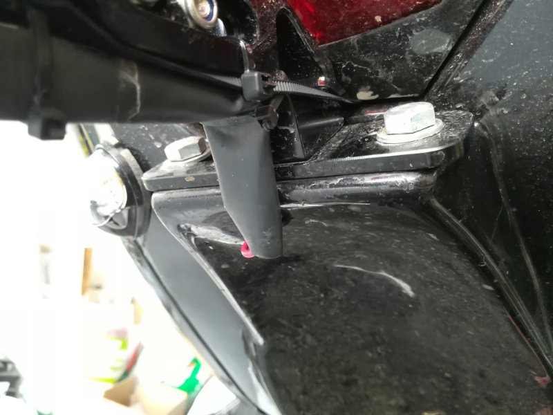 Note:qd j'ai acheté la moto le PDR n'offrait pas assez de rigidité pour ce support (monté directement sur le plastique). Le PDR s'est fissuré et il faut que je le renforce à la fibre. Je l'avais vu venir mais bon, j'étais sur d'autres chantiers plus urgents :)